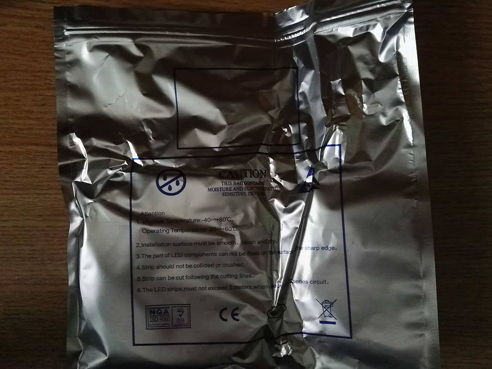 All'interno di questa confezione è contenuto un sacchetto con chiusura ermetica e protettivo per la pioggia e le forti temperature, dove al suo interno è contenuta la striscia led avvolta in un supporto apposito, il telecomando, un cavetto USB e un foglietto d'istruzione delle varie caratteristiche del prodotto.