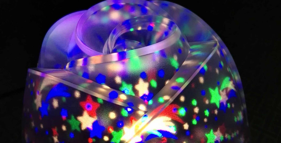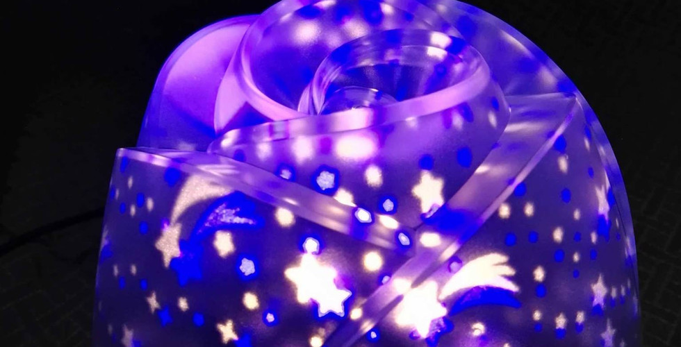 Togliendo la parte superiore gli effetti riprodotti dalla lampadina, vengono proiettate in tutta la stanza.