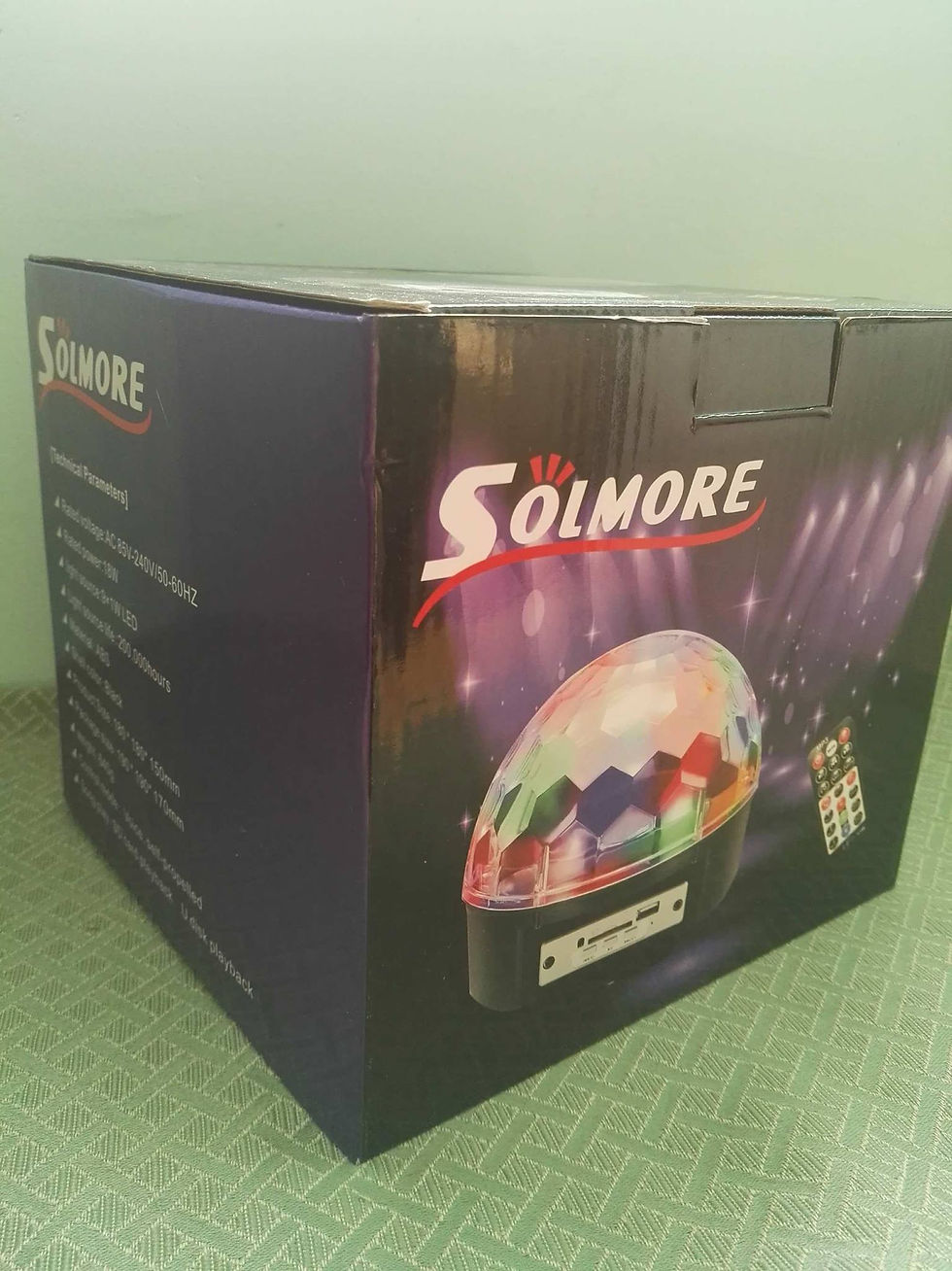 Questo particolare dispositivo di luce è composto da funzioni, che possono funzionare in contemporanea o separatamente, cioè, la parte musicale che permette di ascoltare musica dall'altoparlante integrato, inserendola dai vari ingressi presenti nella parte posteriore della lampada, tra cui l'entrata USB, per le PenDrive (fornita in dotazione) o Hard Disk e l'entrata per la scheda SD, l'altra parte è invece quella luminosa che permette attraverso i LED RGB e ad un motorino che permette di far ruotare la la parte luminosa della lampada, di simulare gli effetti luce della discoteca
