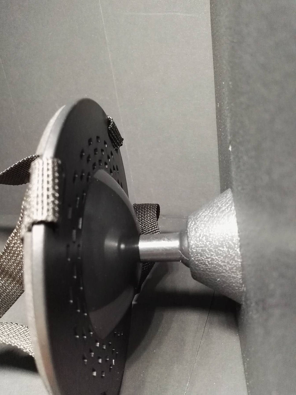 Viene collegato al poggiatesta del sedile posteriore attraverso una doppia cinghia, inoltre ha un perno a sfera, che consente di ruotare lo specchio sia in orizzontale, che in verticale.