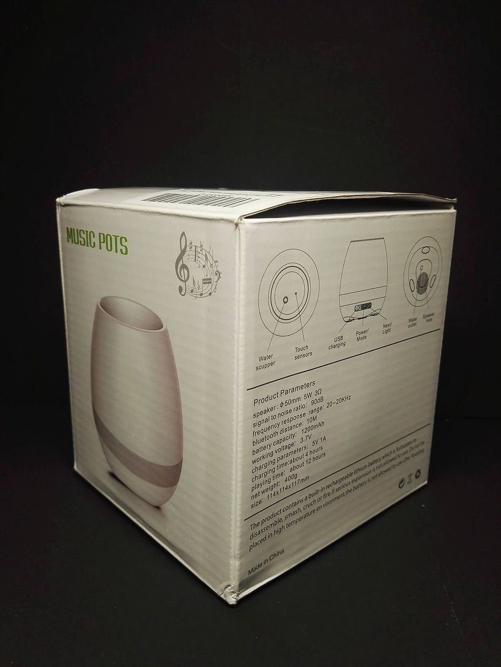 Si tratta di un prodotto molto particolare, infatti il costruttore a ben pensato di creare un piccolo vaso per una piantina, incorporando al suo interno un LED RGB e un altoparlante.